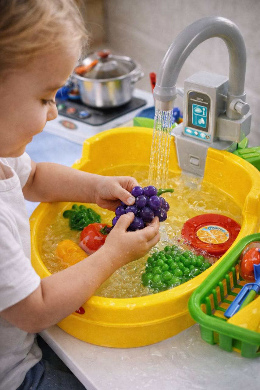 - جذاب و آموزشی: بازی کردن با سینک ظرفشویی به کودکان مفهوم تمیز کردن و نظم را آموزش می دهد.